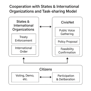対話4−7:図解(「国家・国際機関との協働と棲み分けモデル」のワイヤーフレーム)